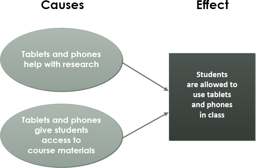 Even when you have identified several causes of a particular effect, one—the main cause —is always (or usually) more important than the others —the contributory (or secondary) causes. Understanding the distinction between the main (most important) and the contributory (less important) causes is vital for planning a cause / effect essay (and for analyzing one as well) because once you identify the main cause, you can emphasize it in your essay (probably in your thesis statement and pattern of development) and downplay the other causes. How, then, can you tell which cause is the most important? Sometimes the main cause is obvious, but often it is not. Examine the diagram below.