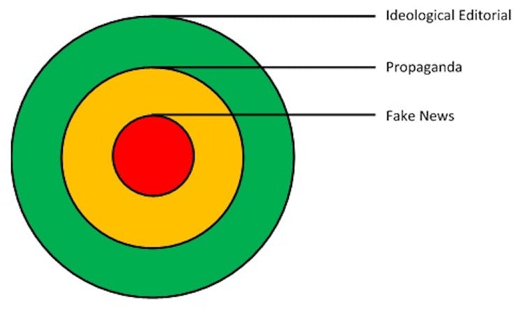 Despite the widespread use of the label, only one of these rings – the central and smallest group – is legitimately “fake news”. Stories in the outer two rings are not necessarily “fake”, and they may or may not actually be “news”. But if particular companies take editorial positions on particular issues, that in itself is not a problem. The important issue is how we interact with these viewpoints.