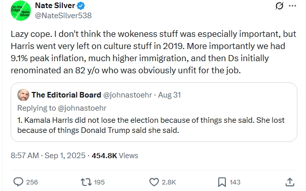 Lazy cope? Nate’s entire political narrative is a lazy cope.