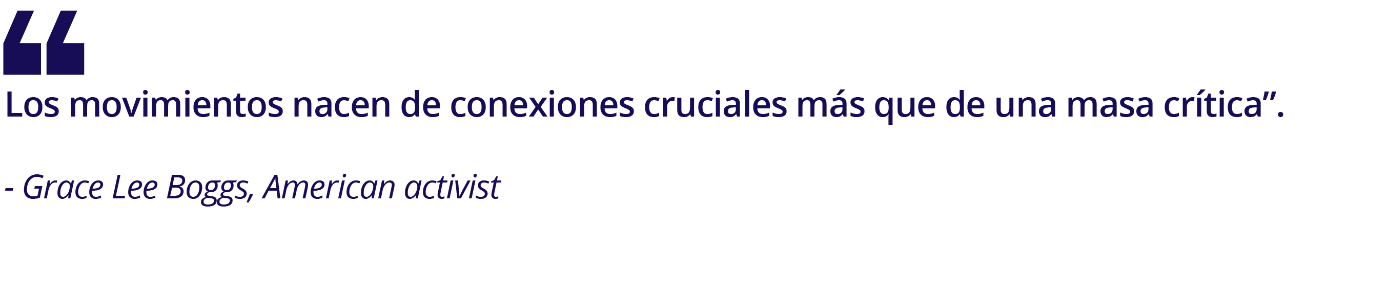 “La infraestructura de los movimientos sociales puede ser física – los espacios de reunión donde las personas se juntan o los megáfonos y el equipo que se utiliza en la calle; la infraestructura de movimientos puede ser organizativa – espacios de coordinación regular para participar en consultas e impulsar el trabajo; a su vez, la infraestructura de movimientos puede ser intelectual – mapeo del poder, bases de datos y listas de contactos… puede suponer relaciones y redes – construcción de alianzas, facilitación de conversaciones, alineación alrededor de demandas colectivas… [y] capacitación de nuevos organizadores. Y la mayoría de las veces, la fortaleza de la infraestructura de movimientos establecida justo antes… desencadena sucesos que pueden desempeñar un papel muy influyente en términos de cuánto pueden los movimientos aprovechar las olas de acción y que tan lejos pueden llevarlos”. – Movement Catalyst1