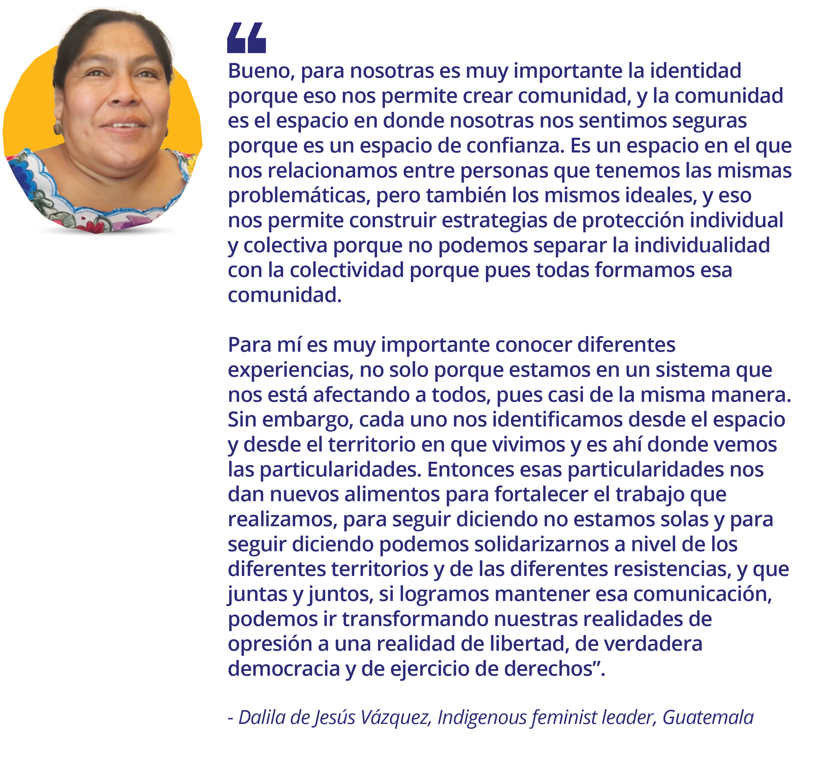 Tendemos a pensar en las formas más visibles del riesgo y la inseguridad que protegen a quienes detentan el poder mediante el silenciamiento y la supresión de cualquier desafío: mano dura con activistas y líderes comunitarios que hablan sin rodeos, leyes más restrictivas que socavan la libertad de expresión y reunión, vigilancia y amenazas de violencia. Pero los riesgos y la inseguridad pueden adoptar formas más cotidianas: la discriminación, la exclusión, la marginación, la subordinación, el silenciamiento, el acoso, la explotación económica y la violencia doméstica y sexual. Estas formas de violencia mantienen el dominio social y político de las personas cuyas identidades no son dominantes.