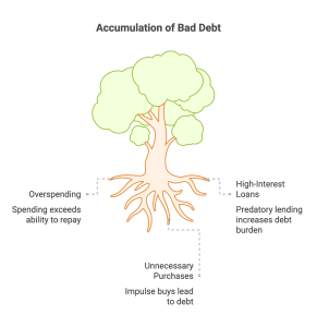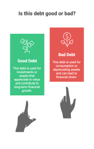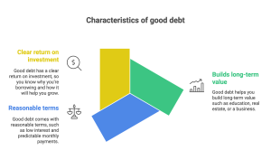 • Not all debt is bad. Good debt can build your future when tied to income growth or long-term value (e.g., education, housing). Bad debt, like high-interest credit cards or payday loans, drains your finances.