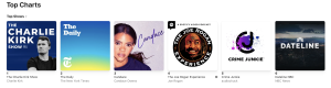 Apple picks their own choice of podcasts for the New and Noteworthy charts within Apple Podcasts and has a newer category of narrative shows that are intended to be listened to in order, called Top Series chart.
