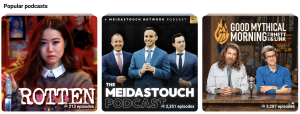 In Apple Podcasts you can see categories such as the ‘Top Shows,’ or ‘Episodes,’ and ‘Top Subscriber Shows’ and ‘Top Subscriber Channels.’