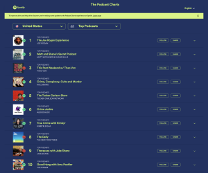 Spotify updates its own Podcast Charts daily and again – they only measure consumption on the Spotify platform. They measure the most popular shows each day based on “unique streams” – which is a listen longer than 60 seconds. If you listen multiple times in a day it still counts as one play.